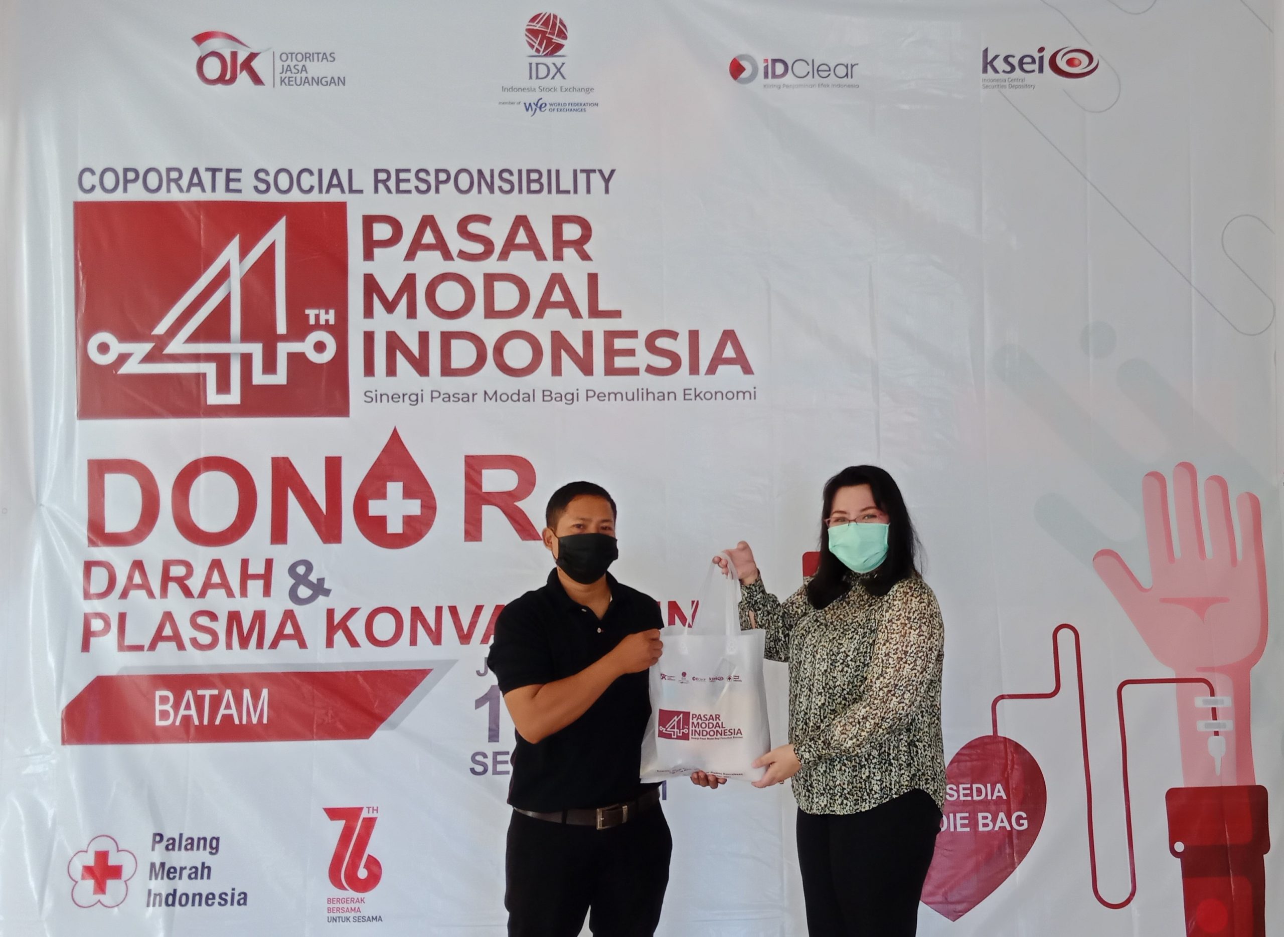 Adapun dalam kegiatan ini perseroan menargetkan tercapainya 200 kantong darah yang berasal dari para pendonor yang diantaranya berasal dari Industri Jasa Keuangan Provinsi Kepulauan Riau, Karyawan di Peusahaan, Mahasiswa dari beberapa kampus dan masyarakat umum yang ada di Kota Batam dan sekitarnya. Dalam kegiatan perseroan telah membagikan 200 paket sembako, snack dan makan siang kepada para pendonor. Pembagian sembako secara simbolis diserahkan langung oleh P.H. Kepala Kantor Perwakilan BEI Kepulauan Riau, Indra Novita kepada perwakilan pendonor. Sesuai surat keterangan yang disampaikan oleh PMI Kota Batam kepada Kantor Perwakilan BEI Kepulauan Riau terdapat 260 peserta yang hadir tetapi yang berhasil melakukan Donor Darah sebanyak 191 pendonor. Beberapa peserta yang gagal melakukan donor darah dikarenakan tidak sesuai dengan ketentuan dari PMI seperti kadar HB yang rendah, darah tinggi, darah rendah, berat badan kurang dll.