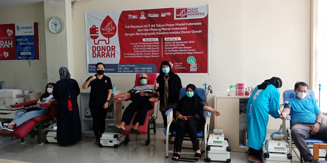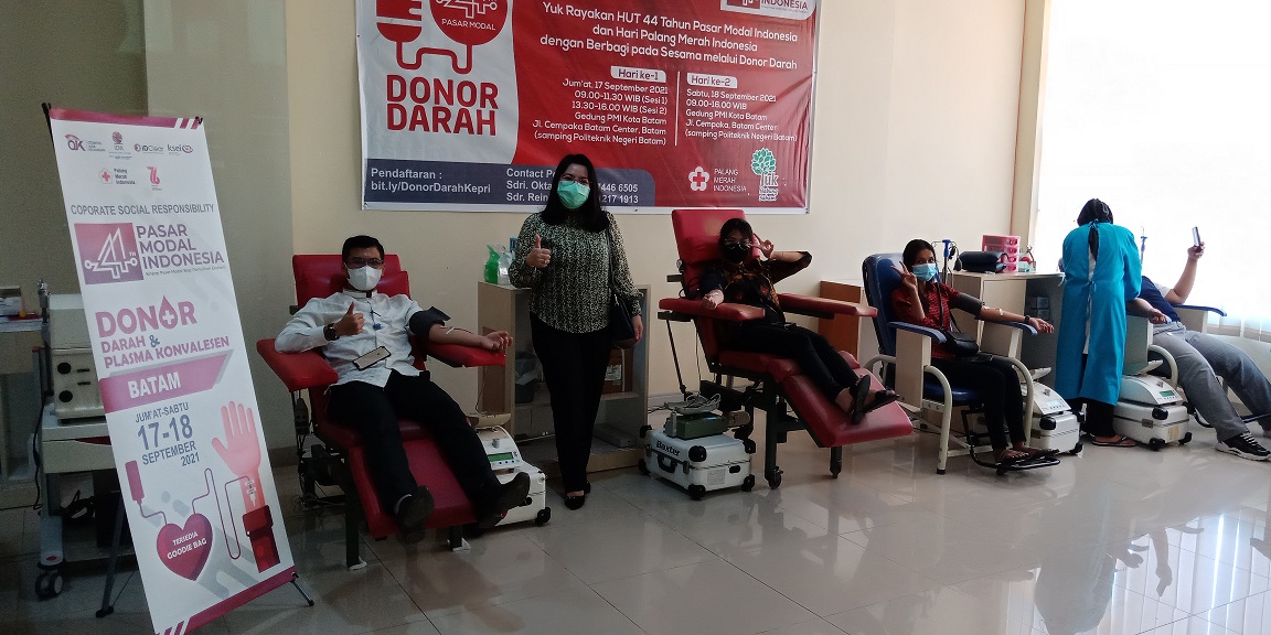 Pada hari yang sama juga telah dilaksanakan acara CSR Donor Darah dan Donor Plasma Konvalesen selama 2 hari pada tanggal 17-18 September 2021 di Kantor PMI Kota Batam dengan menerapkan protokol kesehatan yang ketat seperti wajib menggunakan masker, mencuci tangan, menjaga jarak aman, dsb. Selain untuk memperingati HUT Pasar Modal ke-44 kegiatan CSR ini juga dilakukan dalam rangka memperingati Hari Palang Merah Indonesia ke-76.