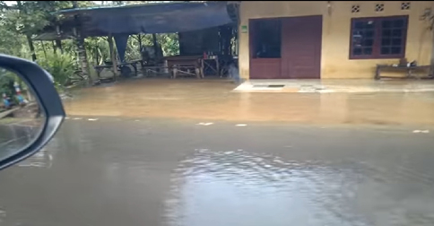 Sepeti yang terjadi di Jalan Nusantara Km 17 Kijang, genangan air mencapai betis orang dewasa. Laju kendaraan terhenti, bahkan sepeda motor yang lewat harus terendam sebagian badan sepeda motornya.