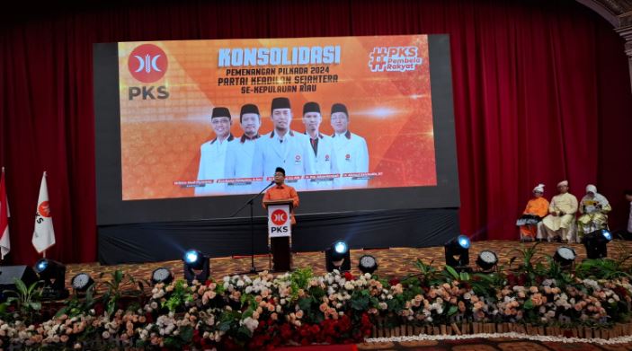 Ketua DPW PKS Kepri Bahktiar mengapresiasi seluruh kader yang hadir dalam agenda Konsolidasi dan Deklarasi Pemenangan Pilkada 2024 di Grand Ballroom Hotel Harmoni One, Batam, Ahad (22/9/2024) siang.