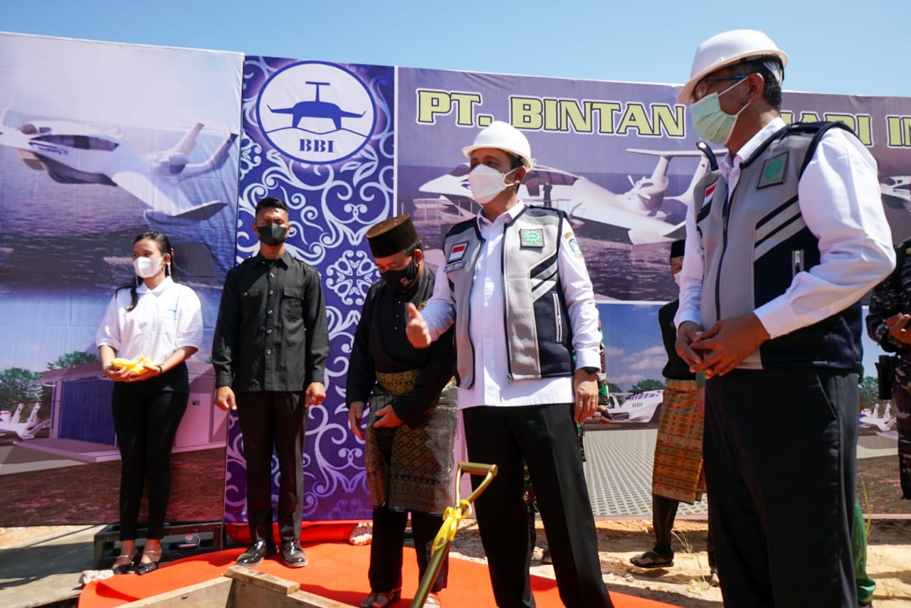 TANJUNGPINANG – Pembangunan Gudang Industri Kapal Hoverwing (WIG) oleh PT. Bintan Bahari Industri (BBI) sudah dimulai. Pembangunannya ditandai Groundbreaking oleh Gubernur Kepri H. Ansar Ahmad di Dompak Seberang, Kota Tanjungpinang, Kamis (23/9). Kapal Hoverwing merupakan kapal cuper cepat dengan kekuatan tempuh melebihi 200 mile perjam.