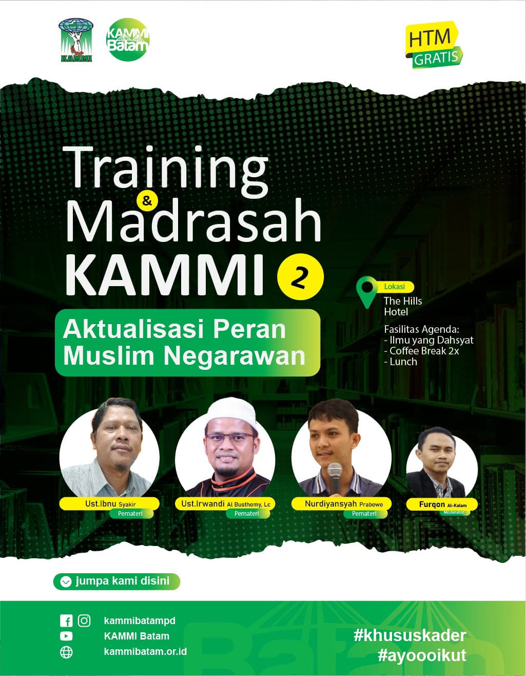 BATAM – Pengurus Daerah Kesatuan Aksi Mahasiswa Muslim Indonesia (PD KAMMI) Kepulauan Riau akan menggelar kegiatan madrasah dan training keanggotaan KAMMI level II. Kegiatan ini akan diselenggarakan pada Sabtu (30/12/2023).