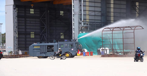 BATAMCLICK.COM, Karimun – Polres Karimun menurunlkan kendaraan taktis jenis AWC ke PT Saipem Indonesia Karimun Branch untuk melaksanakan misi kemanusiaan Operasi Aman Nusa II. dengan melakukan penyemprotan disinfektan.