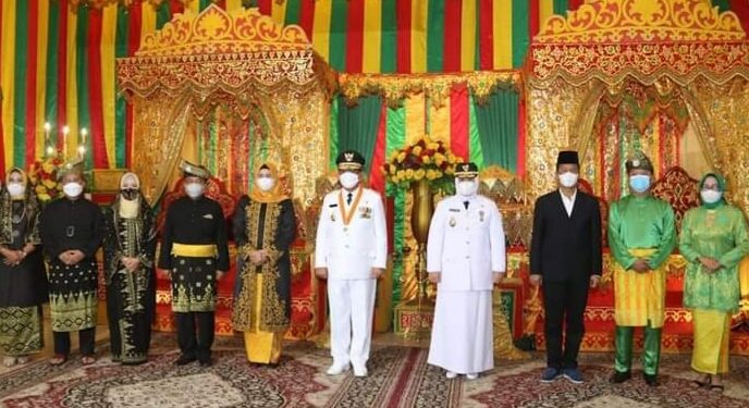 TANJUNGPINANG– Gubernur dan Wakil Gubernur Kepri, Ansar Ahmad dan Marlin Agustina, menjalani proses tepuk tepung tawar di Gedung Daerah, Tanjungpinang. Dalam prosesi itu, Ansar menagak semua pihak bersinergi membangun Kepri, Jumat (26/2/2021).