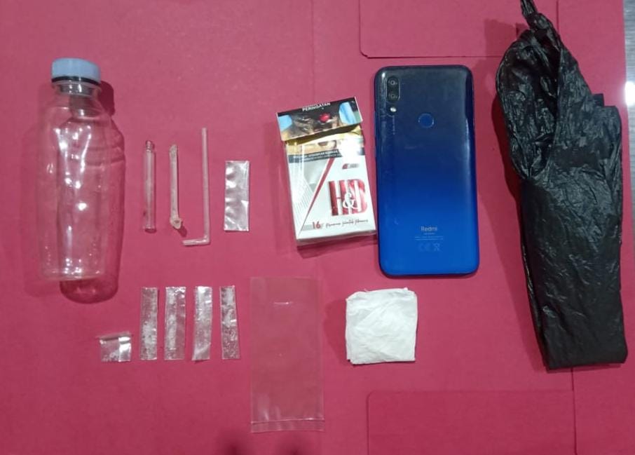 Setelah diciduk oleh petugas, tersangka M alias (J) mengaku menyimpan Narkoba di rumahnya di Gudang Minyak. Dari rumah tersangka ditemukan 1 kotak rokok yang berisi 1 paket diduga sabu dan 1 Rexona Men yang didalamnya berisikan 1 paket sabu serta seperangkat alat hisab sabu. Polisi juga menyita 1 buah timbangan digital, 1 bundel plastik bening, 1 gunting stainless, 1 buah mancis gas dan 1 buah sendok kertas bersama 1 unit Hp.