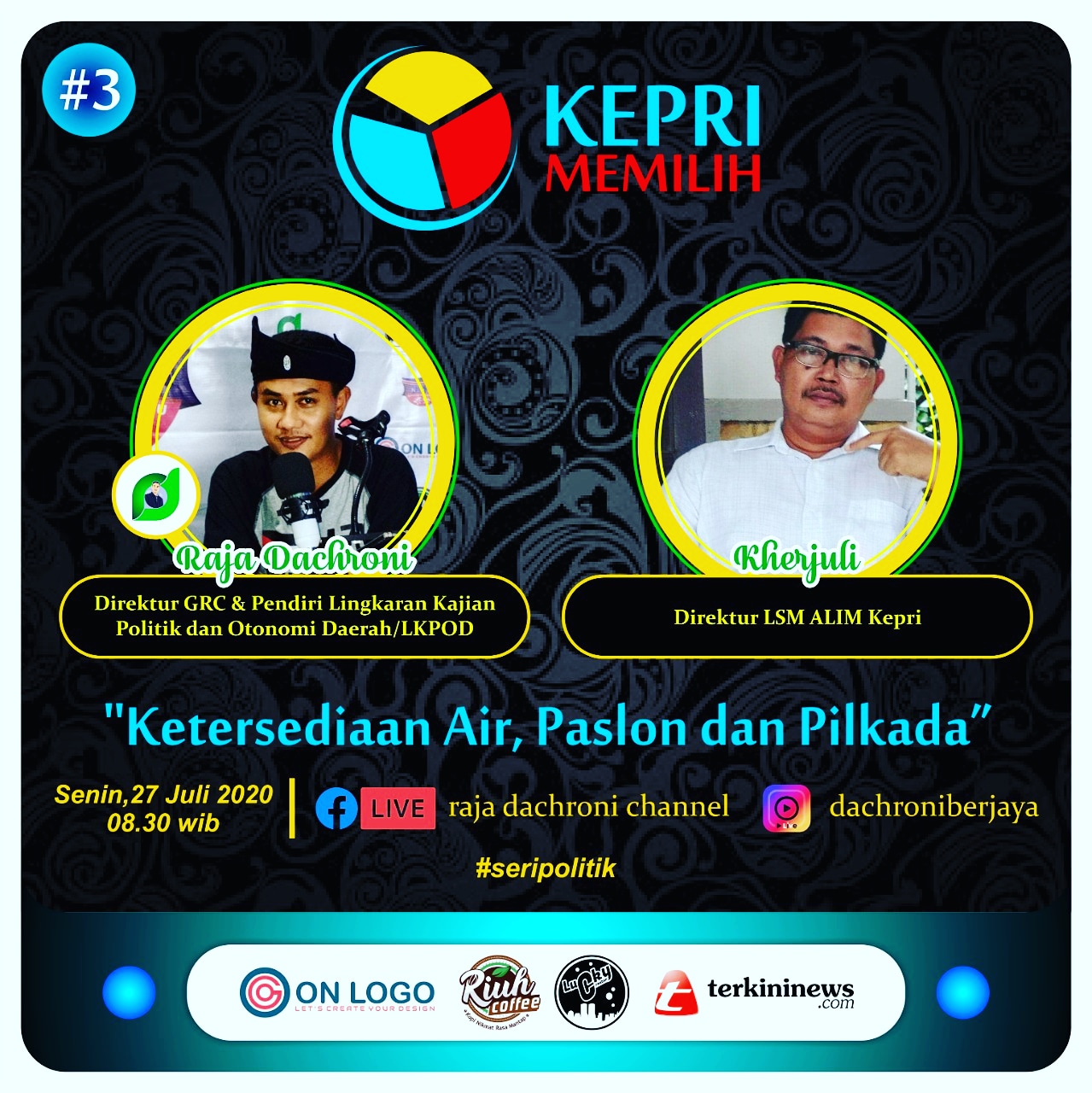 Untuk itu, melalui media sosialnya Raja Dachroni Channel dirinya mengundang beragam aktivis LSM dan kalangan profesional untuk mendiskusikannya via video podcast. Besok, Senin (26/07/2020) Pukul 08.30 hingga 09.00 WIB akan digelar bincang-bincang Program Kepri Memilih.