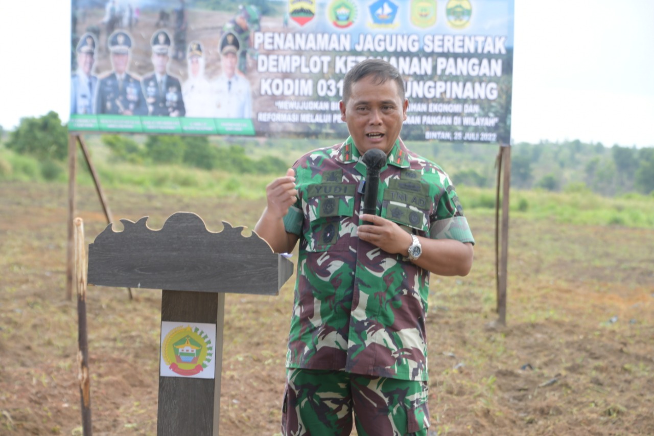Danrem Brigjen Yudi meminta semua pihak untuk mewujudkan ketahanan pangan bagi rakyat indonesia khususnya di Kabupaten Bintan. Damrem menyarankan agar lahan yang terlantar agar dimanfaatkan untuk berkebun.