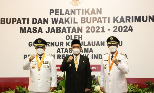 Gubernur Ansar melantik Aunur Rofiq dan H. Azhar Hasyim selaku Bupati dan Wakil Bupati Karimun terpilih masa jabatan 2021-2024. Hadir dalam kesempatan ini Wakil Gubernur Kepri Hj. Marlin Agustina, Sekdaprov Kepri TS. Arif Fadillah, perwakilan dari seluruh FKPD, kepala OPD serta instansi terkait lainnya. Termasuk sejumlah pejabat yang datang dari Kabupaten Karimun ke Tanjungpinang.