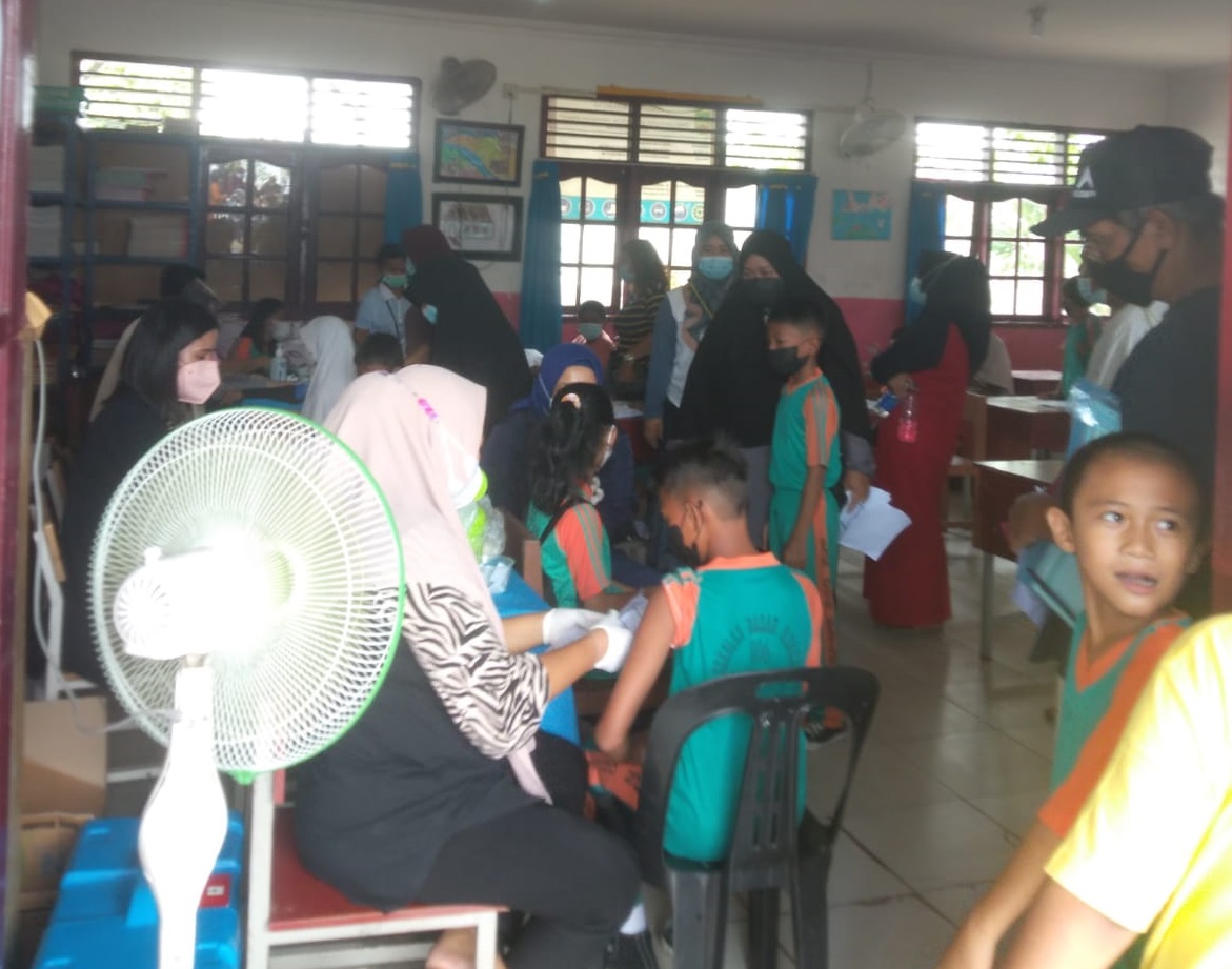 BATAM – Vaksinasi anak saat ini sudah menyasar ke tingkat anak-anak dibawah 11 tahun. Bahkan vaksinasi gencar dilakukan di sekolah-sekolah Dasar untuk mengejar persentasi vaksinasi. Selain di sekolah-sekolah vaksinasi untuk anak-anak juga dilakukan di tempat-tempat umum. Seperti yang digelar Binda kepri dan Apindo Minggu (26/12/2021)