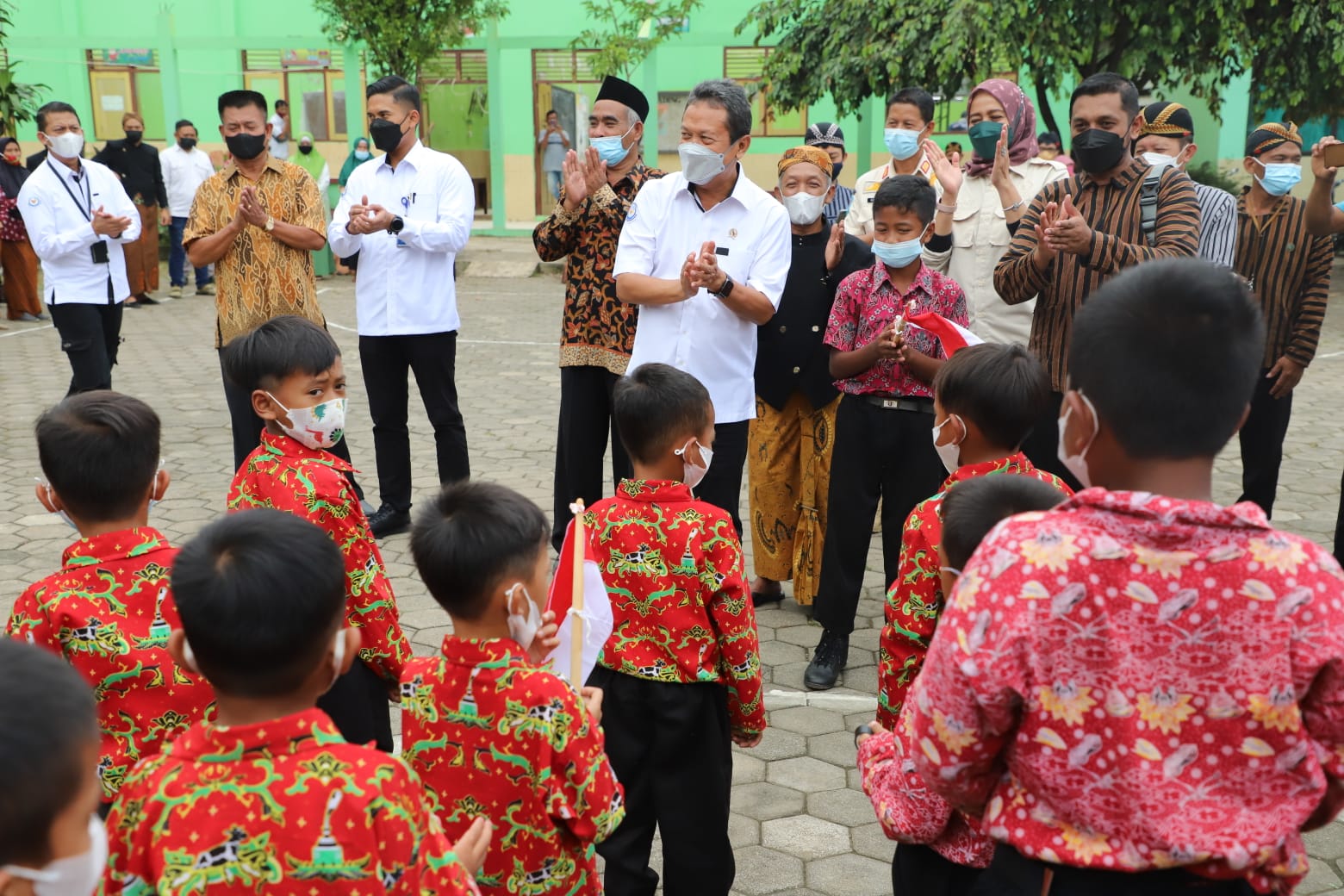 “Siapa ingin jadi Menteri? Siapa ingin jadi Bupati? Siapa ingin jadi Presiden?” tanya Menteri Trenggono kepada para murid yang tentu saja dijawab dengen penuh antusias.