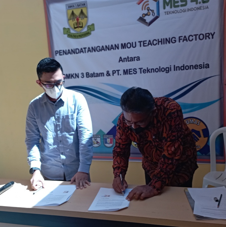 Setelah berhasil menjalin kerjasama dengan sejumlah perusahaan, kali ini, SMKN 3 Batam berkolaborasi dengan PT Mechatronic Education Solution (MES) Batam, perusahaan yang bergerak di bidang custom mesin untuk kebutuhan industri dan provider alat pendidikan khusus sekolah teknik.