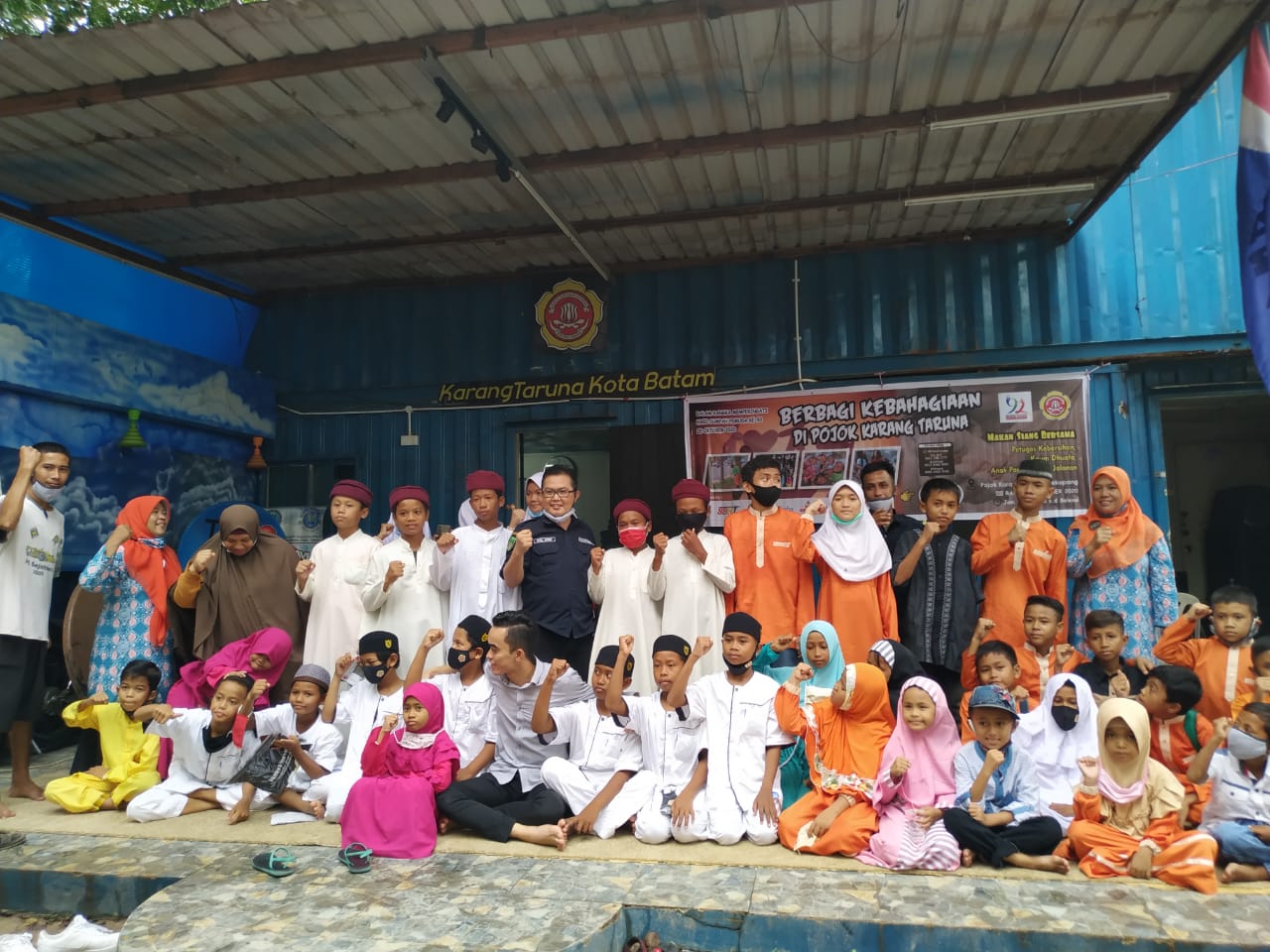 Pada momen memperingati hari Sumpah Pemuda, Rabu, 28 Oktober 2020, Karang Taruna Kota Batam berbagi kebahagiaan bersama petugas kebersihan, kaum dhuafa, anak panti dan anak jalanan di Pojok Karang Taruna, Sungai Harapan, Kecamatan Sekupang, Batam.