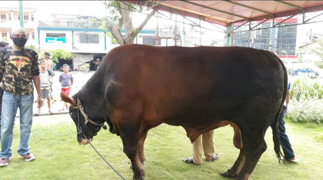 Saat ini, sapi berukuran jumbo itu sudah diikat dekat pelataran Mesjid Besar Nurul Iman Kijang. Sapi warna coklat gelap itu pun jadi menarik perhatian warga karena ukuran dan pemiliknya.