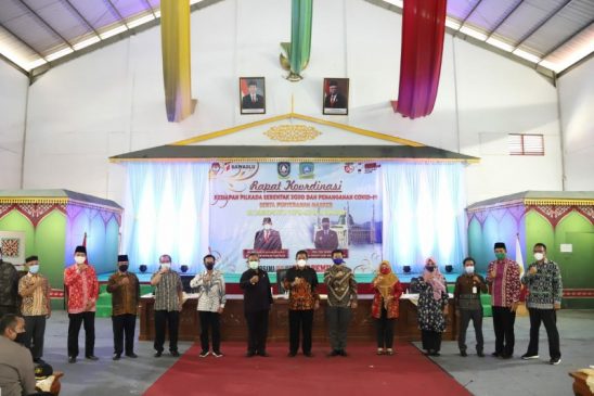 BATAMCLICK.COM, Pjs. Gubernur Kepri Bahtiar Baharudin memimpin Rapat Koordinasi Kesiapan Pilkada Serentak 2020 dan Penanganan Covid-19 serta Penyerahan Masker di Gedung BPMS Kecamatan Siantan, Kepulauan Anambas, Sabtu (28/11).
