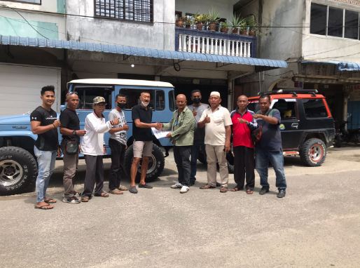 KUNDUR – Dewan Provinsi Kepulaun Riau Ery Suandi menyerahkan akte notaris komunitas Mobil Offroad Sahabat Offroad Kundur SOK di Kedai Kopi Ilham Tanjungbatu, Minggu (28/11/2021).