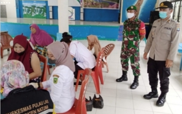 Natuna, Siberindo.co – Personel TNI-AD dari Koramil 08/Pulau Laut, Kodim 0318/Natuna, Serda S. Sembiring, turut melaksanakan pengamanan dan pengawasan, dalam pelaksanaan vaksinasi bagi siswa-siswi SDN 001 Air Payang dan masyarakat umum.