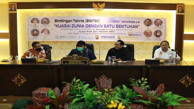 Sebelum memasuki materi Bimtek yang diisi oleh Dirut Siberindo.co Hendry Ch Bangun, Direktur Pemberitaan Zakmi dan Direktur pengembangan Bisnis Ilona Juita, panitia menghadirkan dua nara sumber lokal dari cyber crime Polda Sumsel serta dari Peradi. Tujuannya untuk menghindari potensi permasalahan hukum bagi anggota-anggota SMSI.