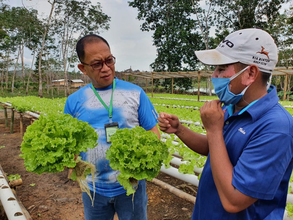 Ketua HKTI Kepri, Alias Wello ketika mengunjungi petani slada dengan sistem hydroponik di Lome, Kecamatan Toapaya, Bintan.