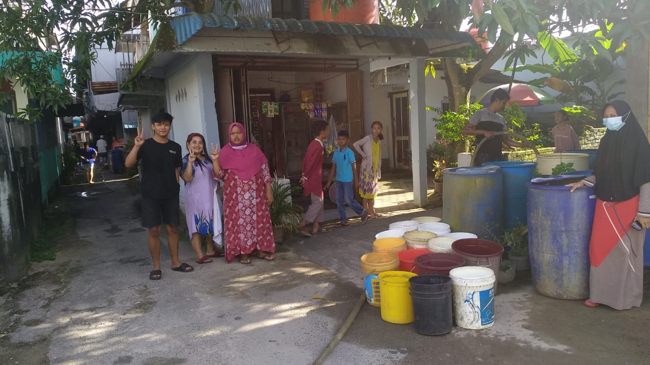 Untuk hari ini, katanya ada beberapa titik yang mendapatkan bantuan air bersih.