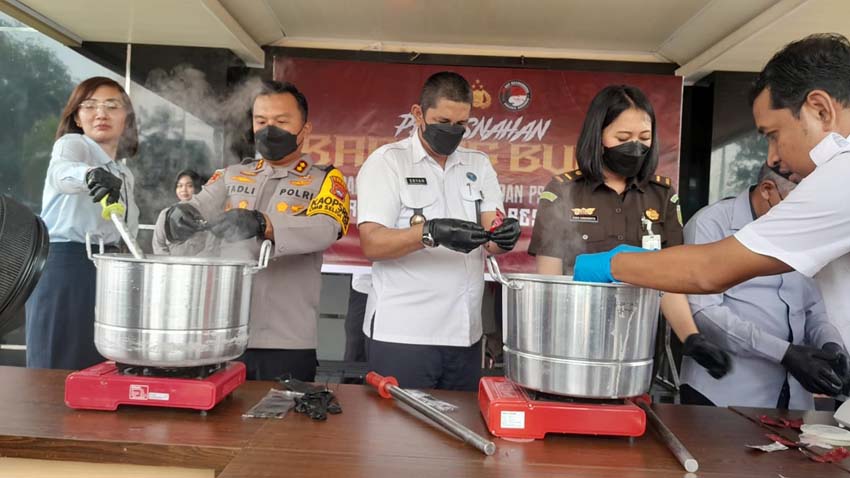 Pemusnahan ini dilakukan Kapolres Karimun AKBP Fadli Agus bersama sejumlah pimpinan atau perwakilan instansi terkait, seperti pengadilan, kejaksaan, BNNK dan tokoh masyarakat di Mapolres Karimun, Rabu (31/1/2024).