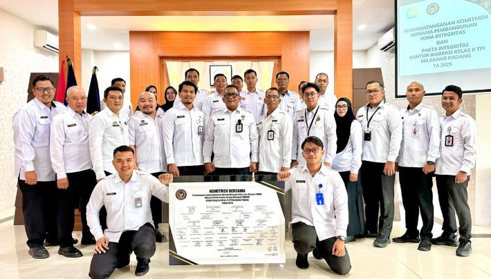 BATAM – Mengawali tahun 2025, Kepala Kantor Imigrasi Kelas II TPI Belakang Padang, Moch. Andri Budiman beserta jajaran melakukan penandatanganan Komitmen Bersama Pembangunan Zona Integritas menuju Wilayah Bebas dari Korupsi dan Pakta Integritas tahun 2025.