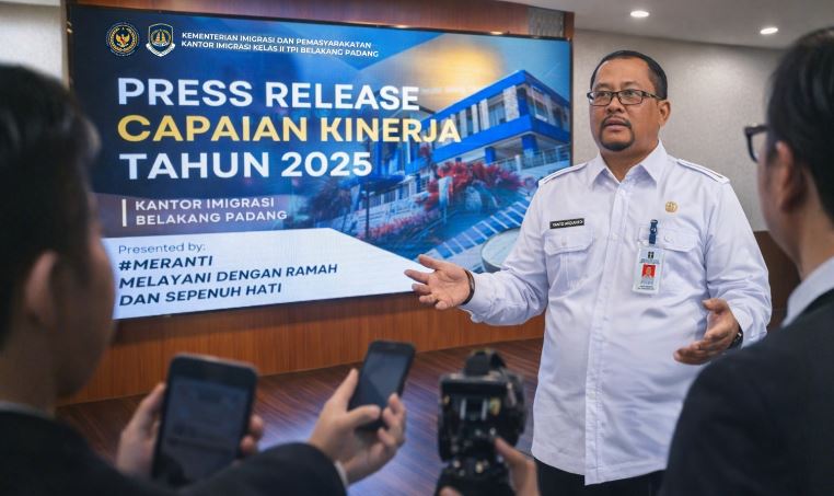 BATAM – Kantor Imigrasi Kelas II TPI Belakang Padang mencatatkan capaian kinerja positif sepanjang tahun 2025. Hal tersebut disampaikan langsung oleh Kepala Kantor Imigrasi Kelas II TPI Belakang Padang, Yanto Ardianto, dalam kegiatan press release capaian kinerja akhir tahun yang digelar pada Selasa (31/12/2025).
