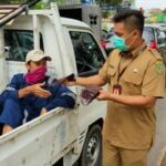 Sejak Pagi, Lurah Belian Bagikan Masker di Dua Titik