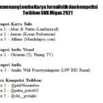 JAKARTA – Panitia lomba karyajurnalistik SKK Migas sudah mengumumkan pemenang lomba karya tulis Jurnalistik 2021. Hasilnya media siber luarbiasa.id dari grub siberindo.co
