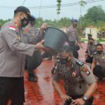 Puluhan Personil Polres Bintan Rayakan Kenaikan Pangkat Dengan Mandi Hujan