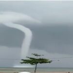 NATUNA – Penampakan angin puting beliung yang bergerak dari arah Utara ke Selatan dengan jarak lebih kurang 200 meter dari bibir pantai,