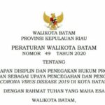 BATAMCLICK.COM: Peraturan Walikota Batam (Perwako) nomor 49 Tahun 2020 tentang Penerapan Disiplin dan Penegakan Hukum Protokol Kesehatan Sebagai Upaya Pencegahan dan Pengendalian