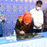 BATAM-Wakil Gubernur Kepri, Marlin Agustina meresmikan Galeri Dekranasda Batam, Rabu (3/3/2021). Galeri tersebut akan menyediakan produk-produk unggulan khas Batam. Kepala Dinas Perinduatrian
