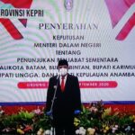 BATAMCLICK.COM: Di Gedung Daerah Kepulauan Riau, Pj Gubernur Kepri DR Drs Baktiar menyerahkan Surat Keputusan Mendagri, tentang Pejabat Sementara Walikota Batam, Bupati,